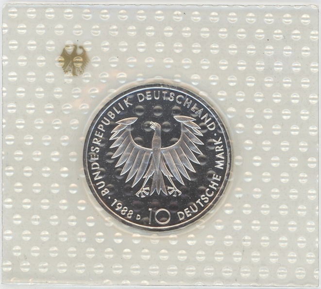 Allemagne 10 Mark 1988 D Arthur Schopenhauer (unz) en argent 0.625 (15.5gr) KM# 168