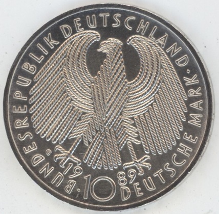 Allemagne 10 Mark 1989 G 40 ans R.F.A. (vz-unz) en argent 0.625 (15.5gr) KM# 173