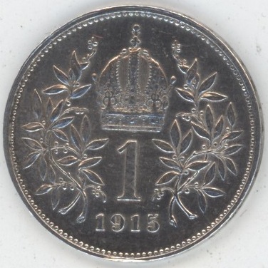 Autriche 1 Couronne 1915 François Joseph Ier (ss+) en argent 0.835 (5gr) KM# 2808