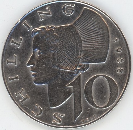 Autriche 10 Schilling 1968 (ss+) en argent 0.640 (7.50gr) KM# 2882
