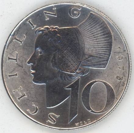 Autriche 10 Schilling 1973 (ss+) en argent 0.640 (7.50gr) KM# 2882