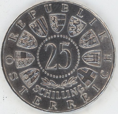 Autriche 25 Schilling 1962 Anton Bruckner (ss+) en argent 0.800 (13gr) KM# 2892