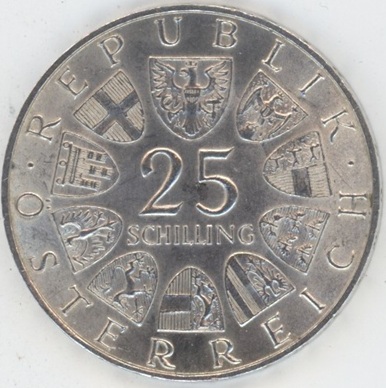 Autriche 25 Schilling 1969 Peter Rosegger (ss) en argent 0.800 (13gr) KM# 2905