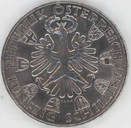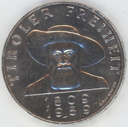 Autriche 50 Schilling 1959 Tyrol (ss+) en argent 0.900 (20gr) KM # 2888