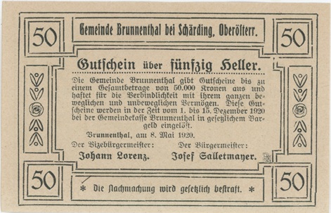 Autriche Brunnenthal 50 Heller 1920