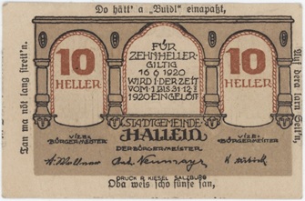Autriche Hallein 10 Heller 1920 peu utilisé