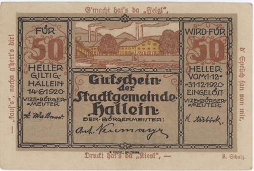 Autriche Hallein 50 Heller 1920 peu utilisé