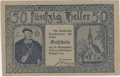 Autriche Holzhausen 50 Heller 1920 Bleu