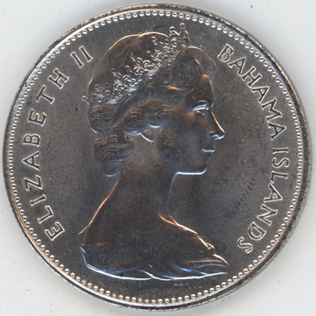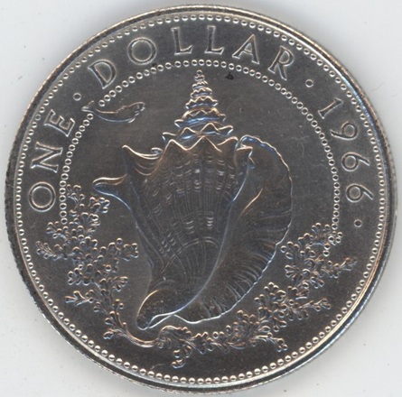 Bahamas 1 Dollar 1966 Elizabeth II (ss+) petites rayures en argent 0.800 (18.14gr) KM# 8