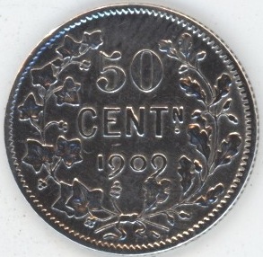 Belgique 50 Centimes 1909 FL. Leopold II (ss) en argent 0.835 (2.5gr) KM# 61