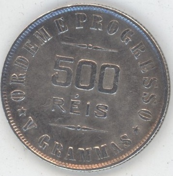 Brésil 500 Reis 1907 (ss) en argent 0.900 (5gr) KM# 506