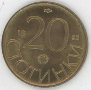 / Bulgarie 20 Stotinki 1992 (vz-unz)