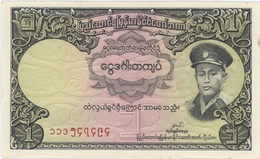 Burma 1 Kyat ND (1958) peu utilisé Information le numéro de série peut changer de celui de l’image
