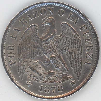 Chili 1 Peso 1878 So (ss-vz) en argent 0.900 (25gr) KM# 142