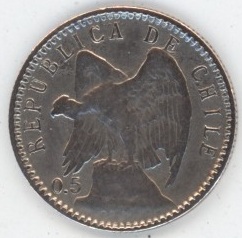Chili 5 Centavos 1907 So (ss) en argent 0.500 (1gr) KM# 155.2