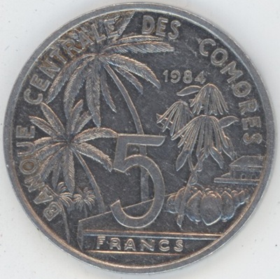 Comores 5 Francs 1984 Conférence Mondiale sur les pêches (ss) petites rayures Aluminium KM# 15