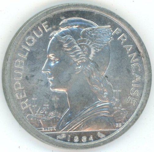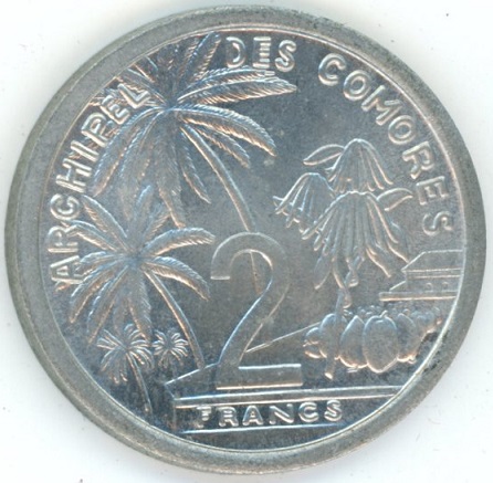 Comores État autonome de la France 2 Francs CFA 1964 (vz-unz) Aluminium KM# 5