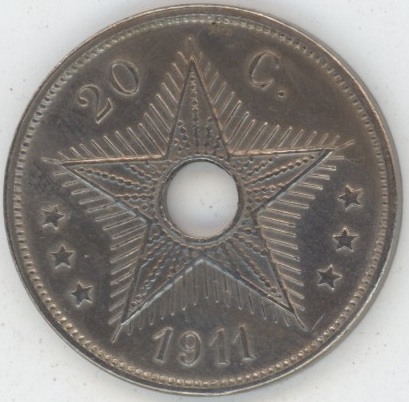 Congo Belge 20 Centimes 1911 Albert I (ss-vz) Copper-Nickel KM# 19