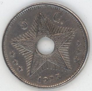 Congo Belge 5 Centimes 1925 Albert I (ss) Copper-Nickel KM# 17