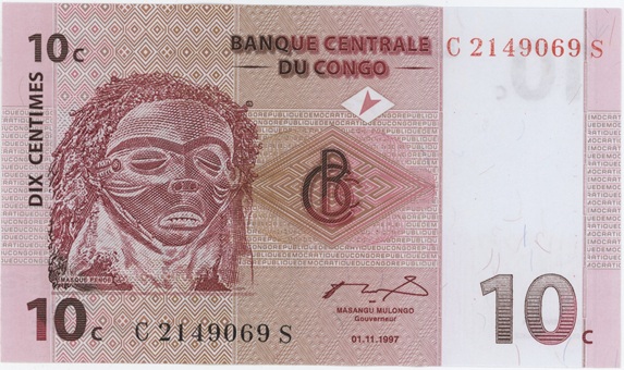 Congo République démocratique 10 Centimes 1997 Neuf Information le numéro de série peut changer de celui de l’image