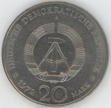 DDR 20 Mark 1972 Friedrich von Schiller (ss) Cupronickel KM# 40