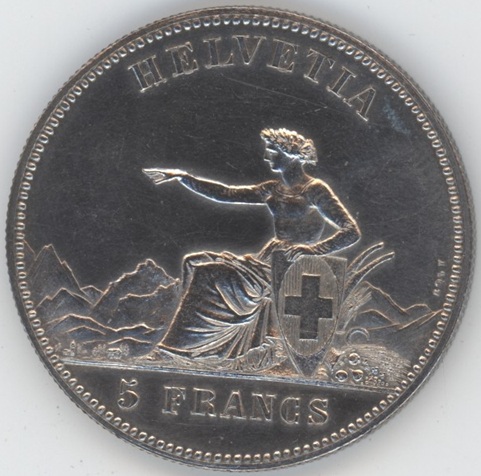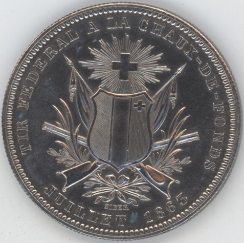 Suisse / Schweiz Ecus de Tir 5 Francs 1863 La Chaux de Fonds (vz) en argent 0.900 (25gr)