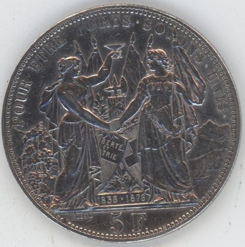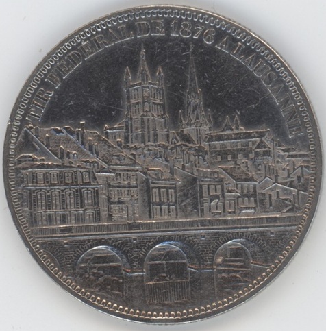 Ecus de Tir 5 Francs 1876 Lausanne (ss+) en argent 0.900 (25gr)