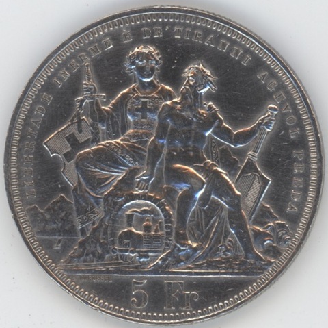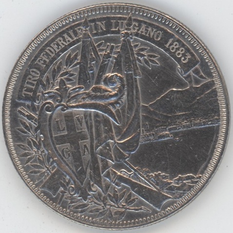 Suisse / Schweiz Ecus de Tir 5 Francs 1883 Lugano (ss-vz) en argent 0.900 (25gr)