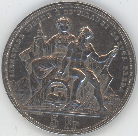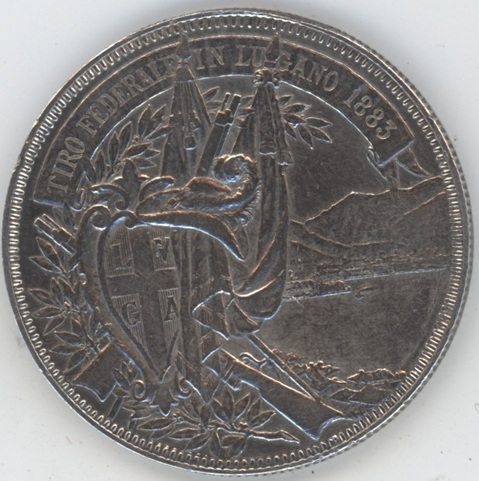 Suisse / Schweiz Ecus de Tir 5 Francs 1883 Lugano (ss-vz) en argent 0.900 (25gr)