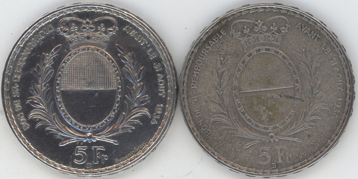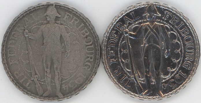 Suisse / Schweiz Ecus de Tir 5 Francs 1934 Fribourg Mat Rare! + Normale (vz) en argent 0.835 (15gr)