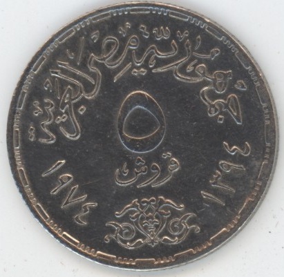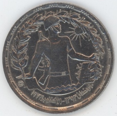 Egypte 5 Piastres 1974 Guerre de Kippour (ss+) Cupronickel KM# A441