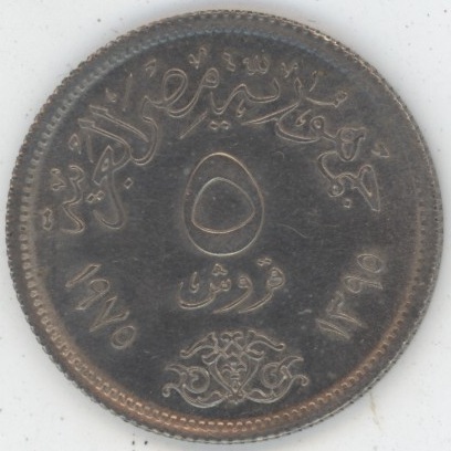 Egypte 5 Piastres 1975 année internationale de la femme (vz-unz) Cupronickel KM# 447