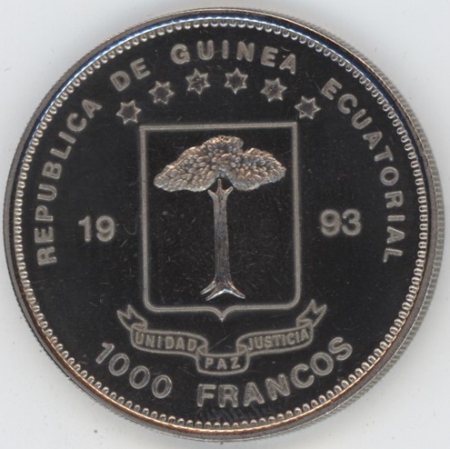 Equatorial Guinea 1000 Francos 1993 Jurassic Dinosaur Stegosaurus (unz) Copper-Nickel KM# 115