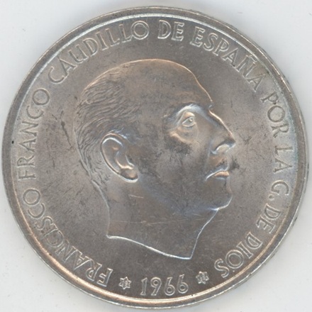 Espagne 100 Pesetas 1966 🟌(1968) Franco (vz) en argent 0.800 (19gr) KM# 797