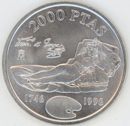 Espagne 2000 Pesetas 1996 Goya (unz) en argent 0.925 (18gr) KM# 968