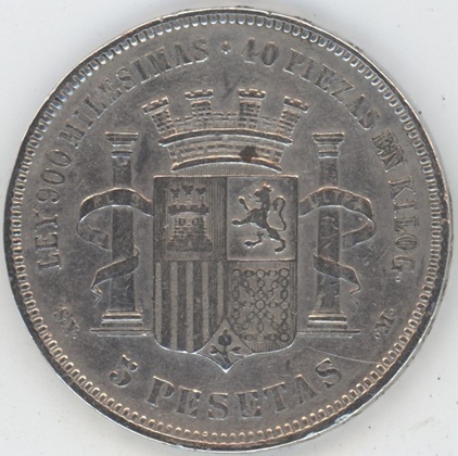 Espagne 5 Pesetas 1870 « Gouvernement provisoire » (ss) en argent 0.900 (24.85gr) KM# 655