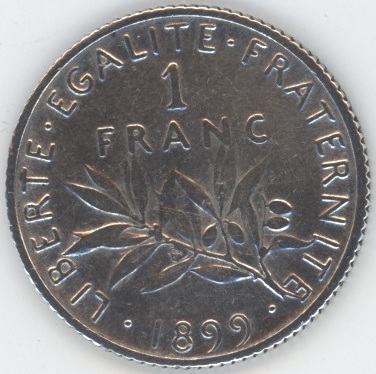 France 1 Franc 1899 Semeuse (s-ss) en argent 0.835 (5gr) KM# 844