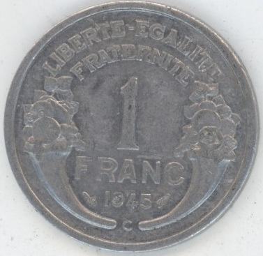 France 1 Franc 1945 C Morlon (ss) Aluminium KM# 885a.3