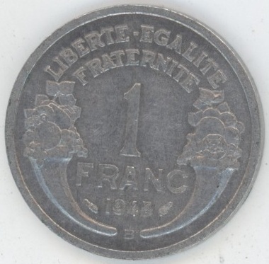 France 1 Franc 1948 B Morlon (ss-vz) Aluminium KM# 885a.2