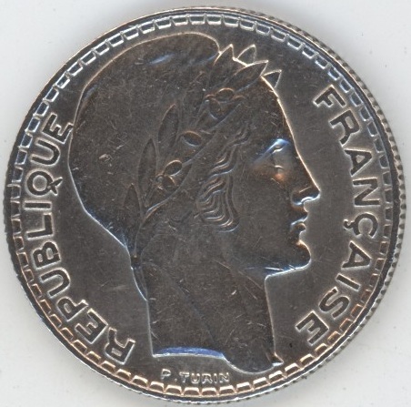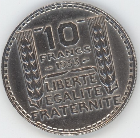 France 10 Francs 1933 Turin (ss) en argent 0.680 (10gr) KM# 878