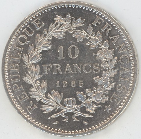 France 10 Francs Hercule 1965 (ss-vz) en argent 0.900 (25gr) KM# 932