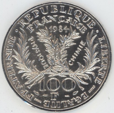 France 100 Francs 1984 Marie Curie (ss+) en argent 0.900 (15gr) KM# 955