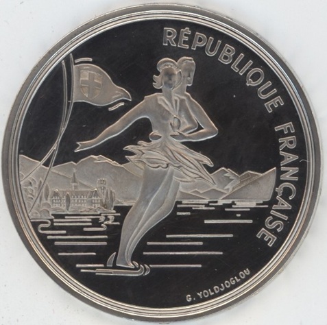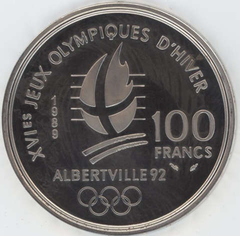 France 100 Francs 1989 Albertville 92 patinage artistique) (vz) en argent 0.900 (22.2gr) KM# 972