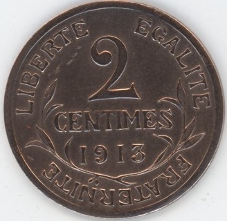 France 2 Centimes 1914 Daniel-Dupuis (ss-vz) Bronze KM# 841