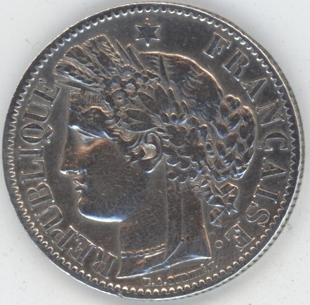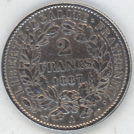 France 2 Francs 1887 A Cérès (ss) en argent 0.835 (10gr) KM# 817