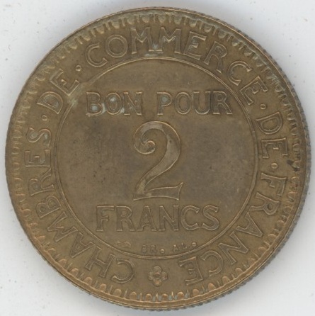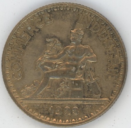 France 2 Francs 1923 Chambres de commerce (ss+) Aluminium-Bronze KM# 877