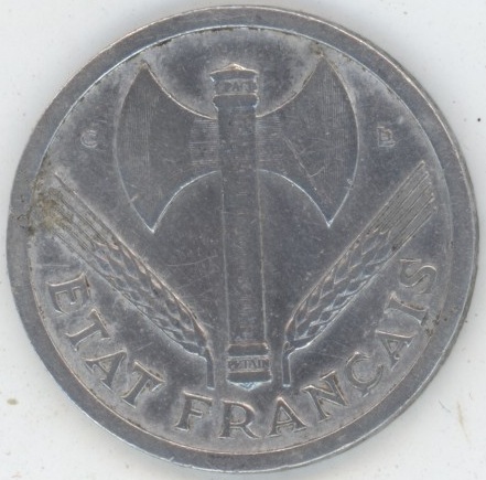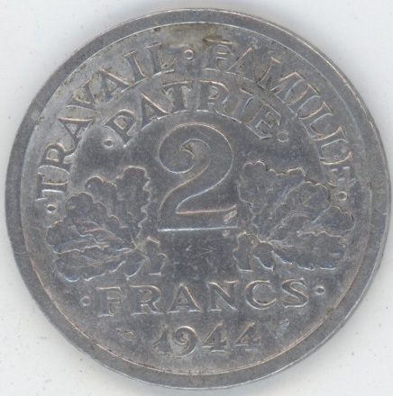 France 2 Francs 1944 C Francisque (ss) Aluminium KM# 904.3