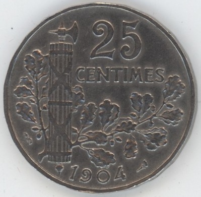 France 25 Centimes 1904 Patey (ss) Nickel KM# 856