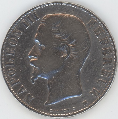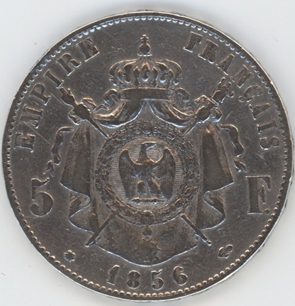 France 5 Francs 1856 BB Napoléon III Empereur (s-ss) en argent 0.900 (25gr) KM# 782.2