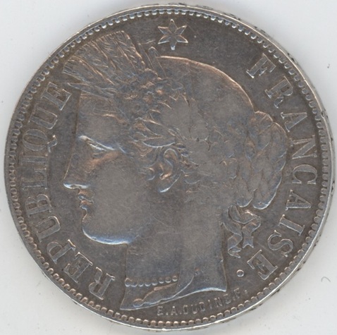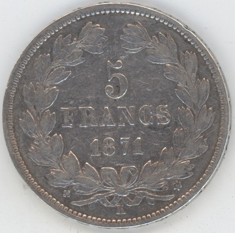 France 5 Francs 1871 K Cérès (ss) en argent 0.900 (25gr) KM# 817